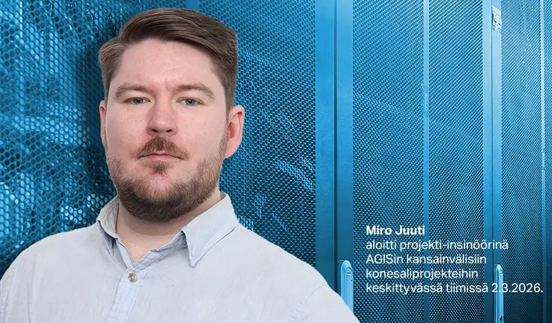 Rakennusinsinööri (AMK) Miro Juuti aloitti AGISin kansainvälisiin konesaliprojekteihin keskittyvässä tiimissä 2.3.2026. Tiimiä johtaa aluemyyntipäällikkö Marko Pelkonen, joka on myös Miron lähin esihenkilö.